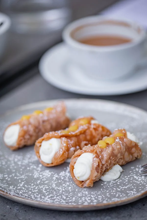 קנולי – גלילי בצק ממולאים בקרם ריקוטה מתוק, אחד המאכלים האהובים בסיציליה, שמוגשים בכל דוכן בשוקי חג המולד.